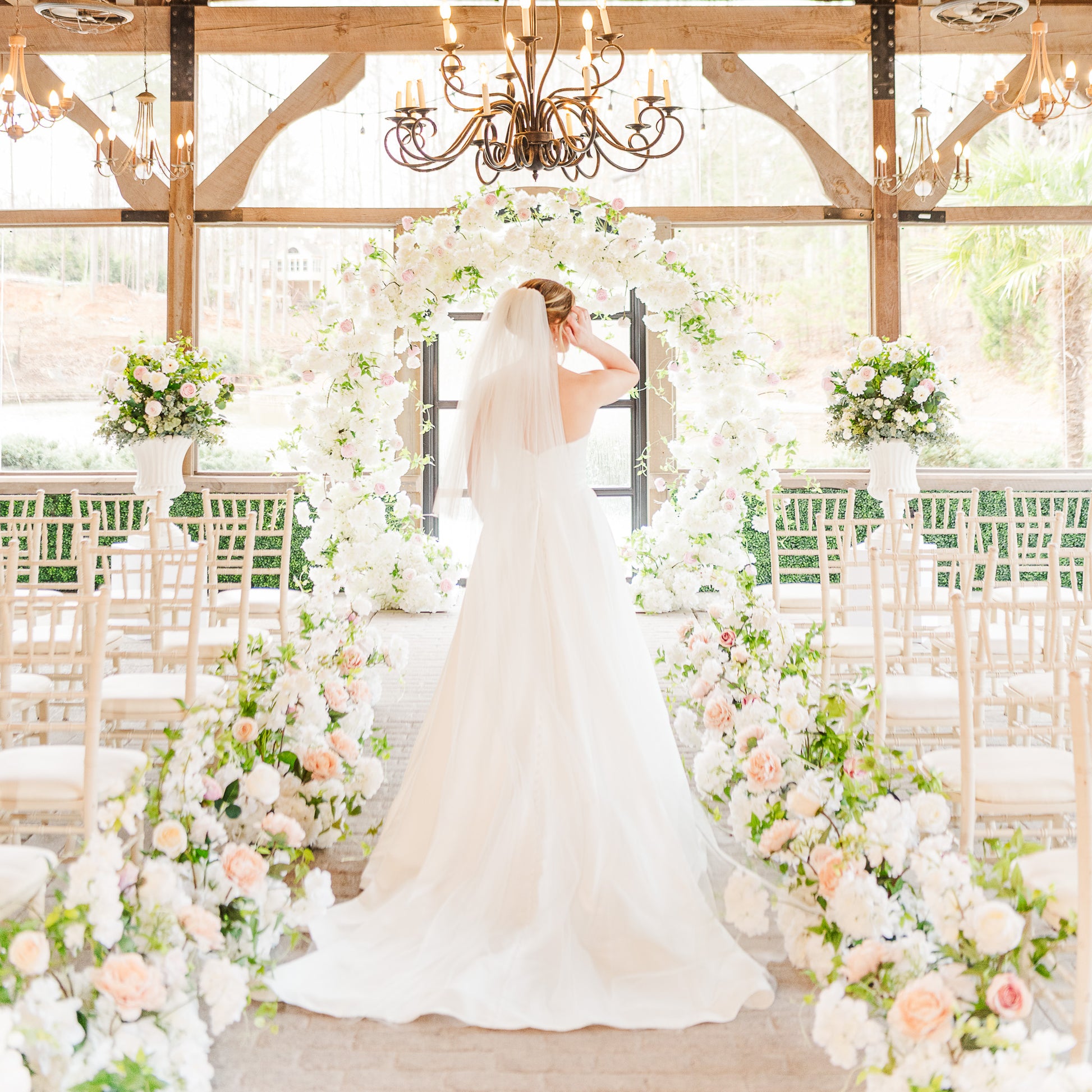 The Meadow Arch is stunning and designed to create a light, airy, and romantic garden atmosphere. It features real touch white and ivory roses, spray roses, peonies, hydrangeas, and peony buds, complemented by seeded eucalyptus and wispy clematis greenery. This arch perfectly coordinates with The Everly Collection Florals. The price includes the arch, all the flowers shown in the photo, delivery, and setup. Pickups before 9:00pm are free, but there will be a charge for pickups after that time. The arch is incredibly full and looks even more impressive in person than in photos.